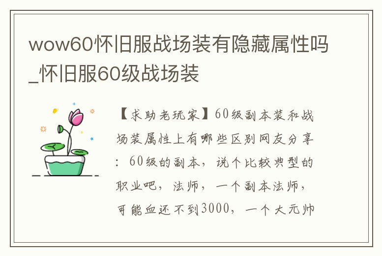 wow60懷舊服戰場裝有隱藏屬性嗎_懷舊服60級戰場裝