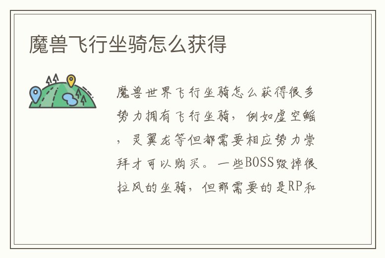 魔獸世界飛行坐騎購買方法是首先游戲商城里可以用戰網點買到飛行坐騎。在游戲內常見的飛行坐騎聯盟在暴風城鳥點附近可以購買。部落在奧格瑞瑪在坐電梯上去的騎術訓練師附近可以購買。故事背景(納克薩瑪斯之影)上古之神克蘇恩隱藏。