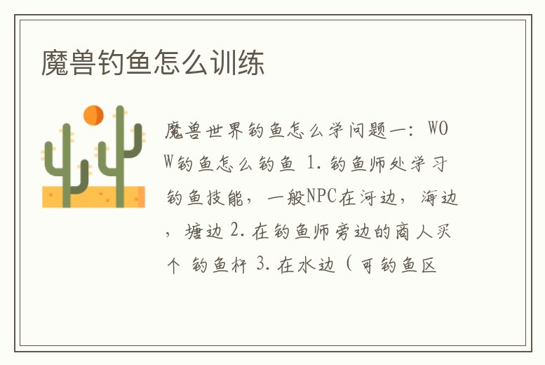魔獸釣魚怎么訓練