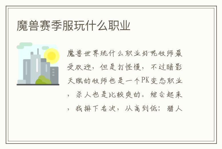8、魔獸世界賽季服選什么職業(yè)首發(fā)比較好