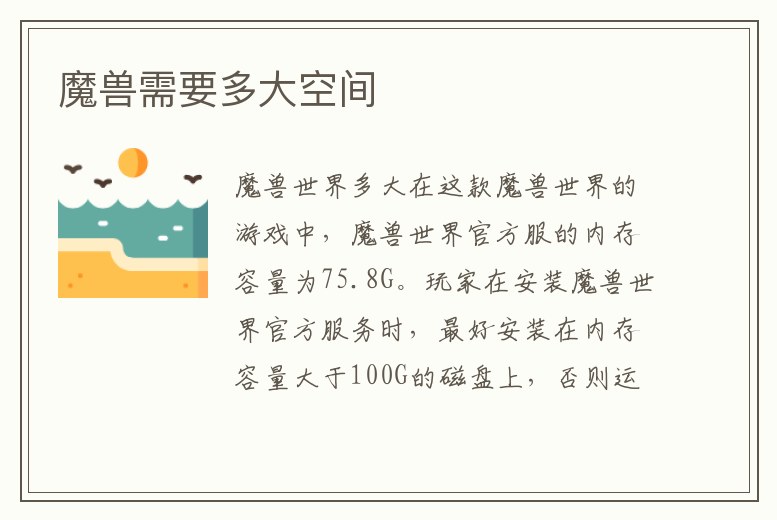 在這款魔獸世界的游戲中,魔獸世界官方服的內存容量為75.8G。玩家在安裝魔獸世界官方服務時,最好安裝在內存容量大于100G的磁盤上,否則運行游戲后會出現卡頓現象。60級經典懷舊服內存容量4.95G燃燒遠征內存容量8.40G,在這。