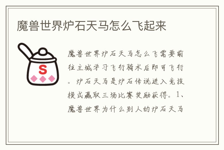 需要前往主城學習飛行騎術后即可飛行。爐石天馬是爐石傳說進入競技模式贏取三場比賽獎勵獲得。