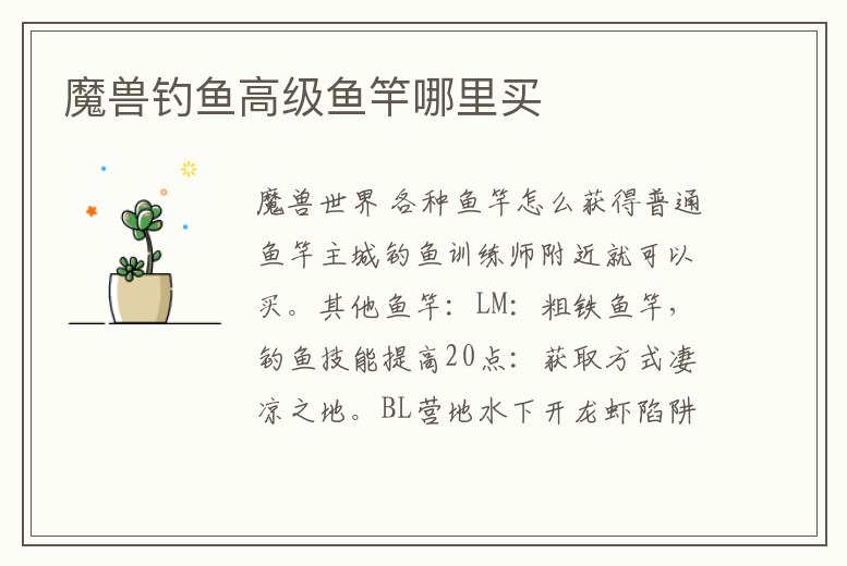 2、魔獸世界釣魚的高級點(diǎn)的魚竿怎么來的啊
