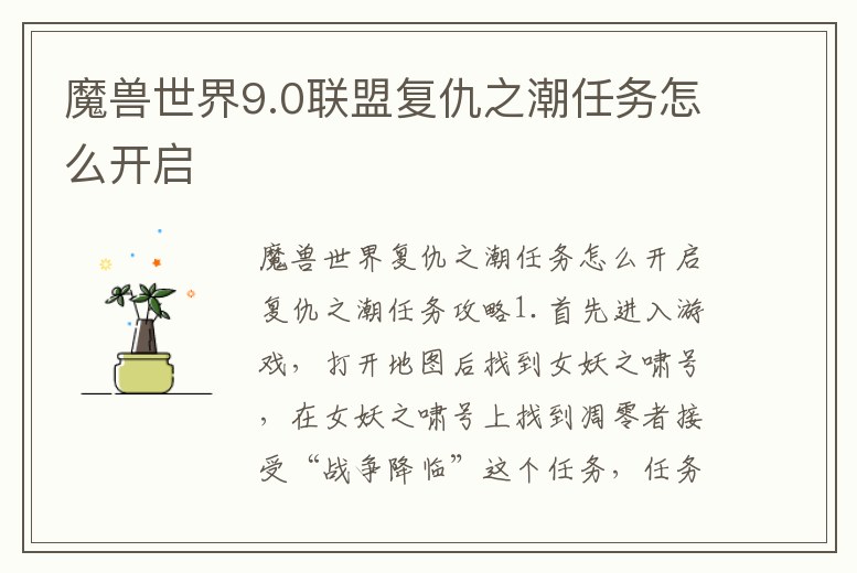 魔獸世界復仇之潮任務怎么開啟 復仇之潮任務攻略