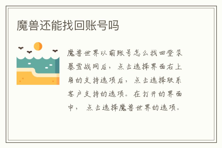 網(wǎng)友分享:但請盡量回憶)。注意:若通行證下有魔獸世界賬號,還需提供賬號下的角色名、服務器、種族、等級、職業(yè)等信息(可以不完全提供,但請盡量回憶)。參考資料:暴雪-我遺忘了我的暴雪游戲通行證、密碼、安全令,需要找回 。