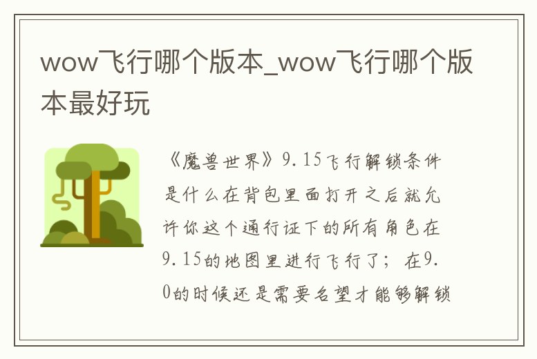 wow飛行哪個版本_wow飛行哪個版本最好玩