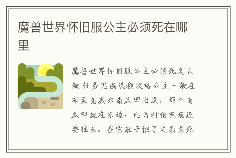 魔獸世界懷舊服公主必須死怎么做 任務(wù)完成流程攻略