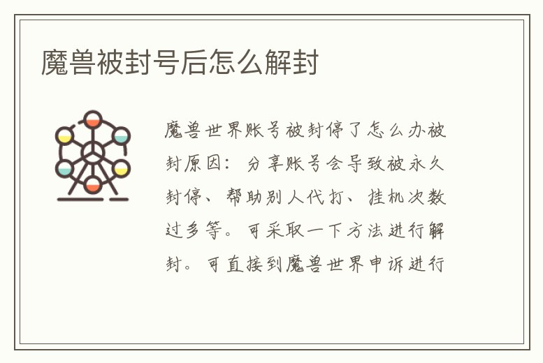 魔獸世界賬號被封停了怎么辦