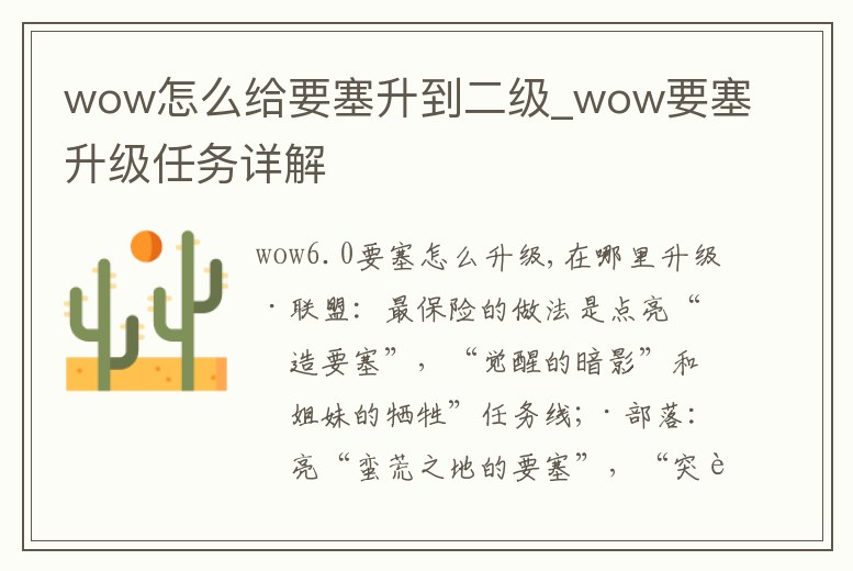 wow怎么給要塞升到二級(jí)_wow要塞升級(jí)任務(wù)詳解