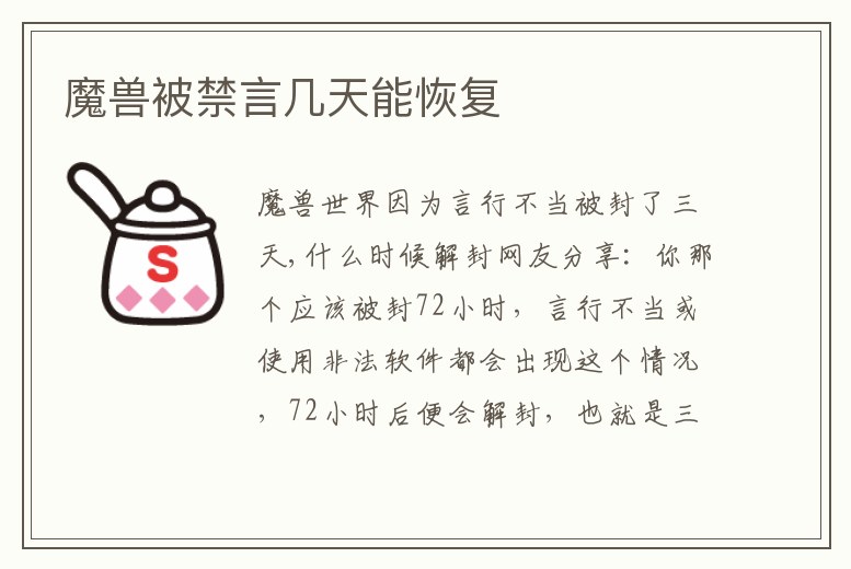 魔獸世界因?yàn)檠孕胁划?dāng)被封了三天,什么時(shí)候解封