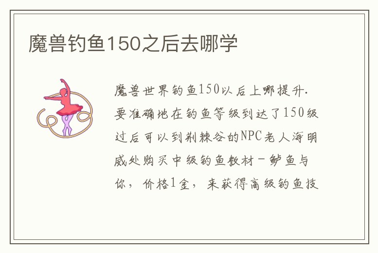 魔獸釣魚150之后去哪學(xué)