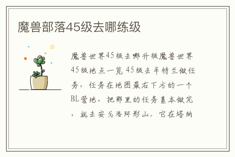 45級你荊棘谷的任務(wù)應(yīng)該差不多了!那就去塔納利斯,在哪里升級打48就可以去環(huán)形山,然后在去費伍德森林 在去冬泉谷 到了58~59 (如果不夠可以去希利蘇斯玩玩)就可以去外域了。