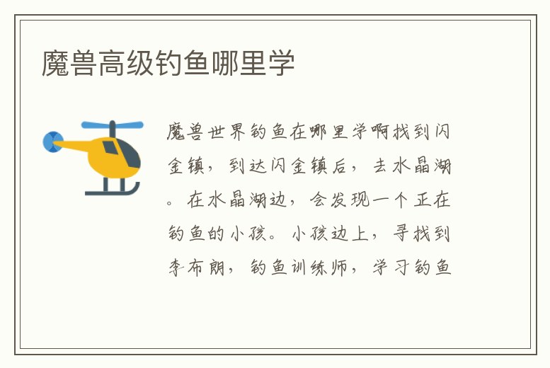 網友分享:老人海明威,位于荊棘谷藏寶海灣,坐標(27.4,77.2)。高級釣魚150-225,玩家釣魚等級達到150級之后,可以前往荊棘谷藏寶海灣的NPC老人海明威處,花費1金幣購買“中級釣魚教材-鱸魚與你”,就可以提升為高級漁夫,并開放等級至。