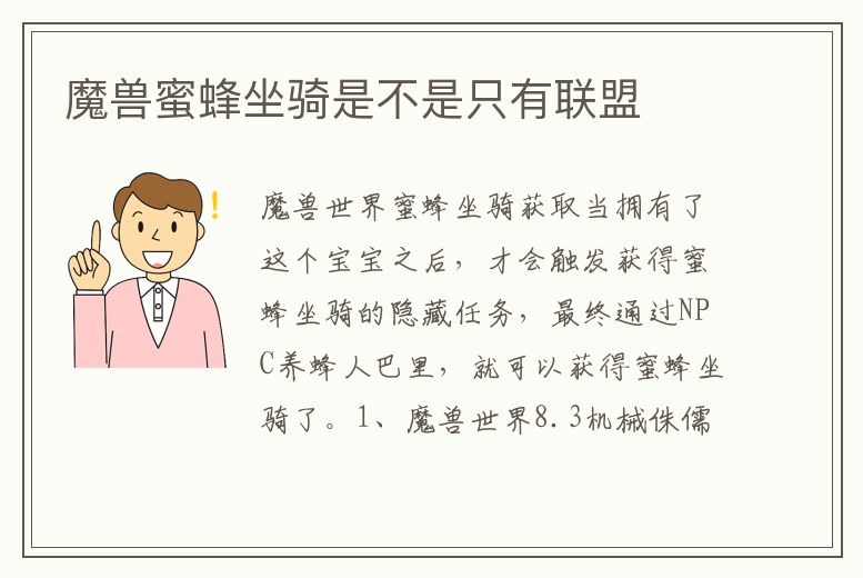 當擁有了這個寶寶之后,才會觸發獲得蜜蜂坐騎的隱藏任務,最終通過NPC養蜂人巴里,就可以獲得蜜蜂坐騎了。