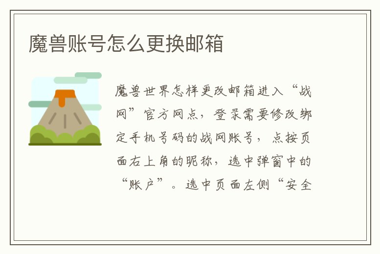 有兩種方法可以改:1.直接打電話聯系客服,它會讓你提供身份證掃描件及新的郵箱。2.登陸戰網,在頁面的左下方有在線聯系客服,點擊賬號郵箱修改,進去后按照提示填寫內容,也需要身份證掃描件,等15天以后就可以了。這15天。