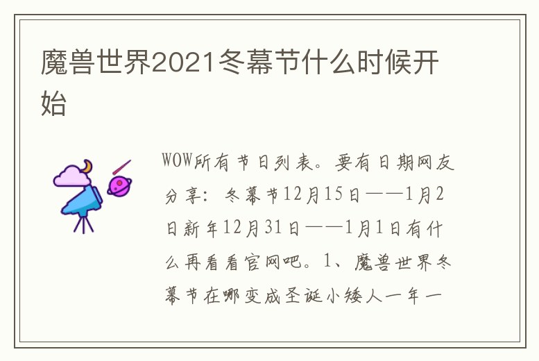 6、魔獸世界每年都有哪些節日,分別在什么時候