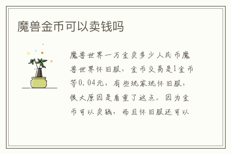 魔獸金幣可以賣(mài)錢(qián)嗎