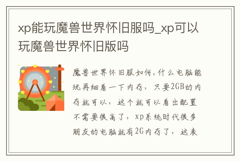 xp能玩魔獸世界懷舊服嗎_xp可以玩魔獸世界懷舊版嗎