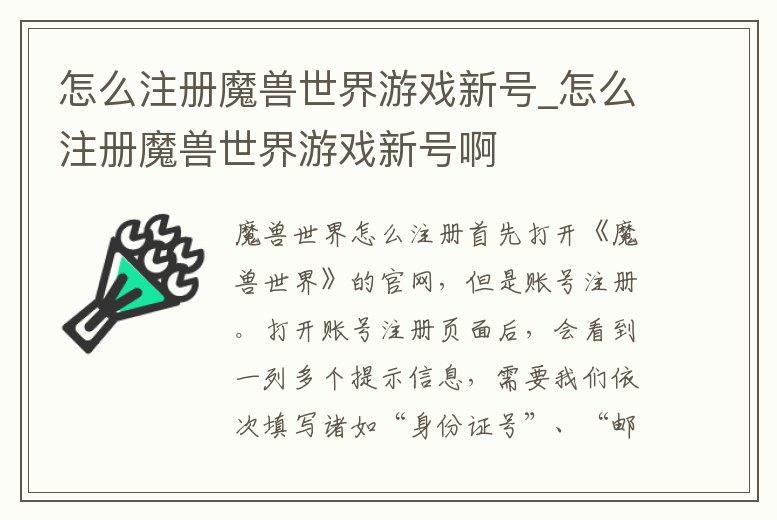 怎么注冊魔獸世界游戲新號_怎么注冊魔獸世界游戲新號啊