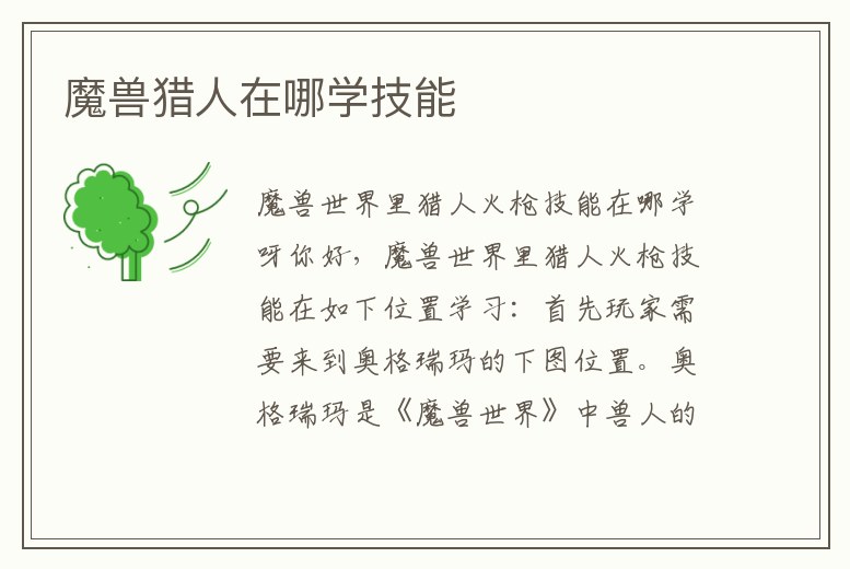 奧格瑞瑪可學習武器技能:弓箭,匕首,拳套,單手斧,雙手斧,投擲武器,法杖 武器大師塞尤克 等級:50 具體坐標:奧格瑞瑪 (81,19)武器大師哈納什 等級:50 具體坐標:奧格瑞瑪 (81,19)雷霆崖可學習武器技能:槍,法杖,單。