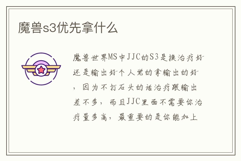 魔獸世界MS中JJC的S3是換治療好還是輸出好