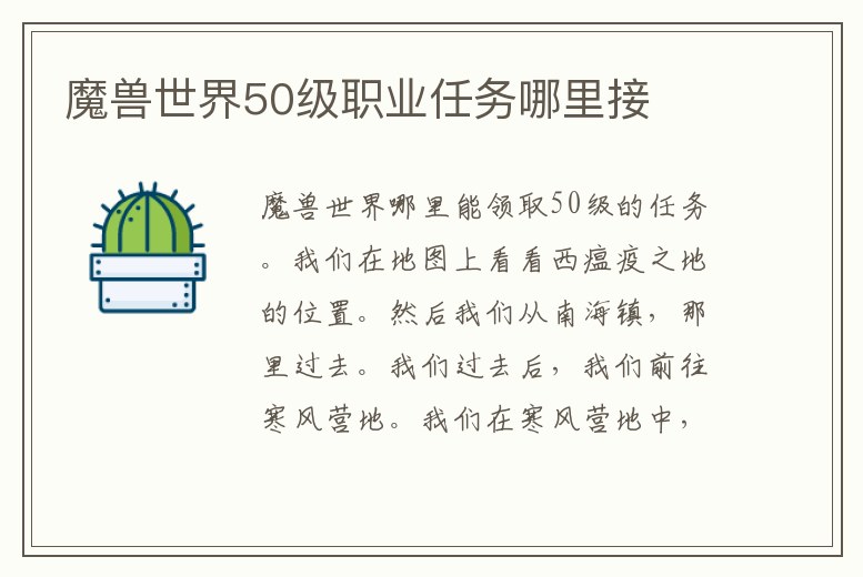 魔獸世界50級職業任務哪里接