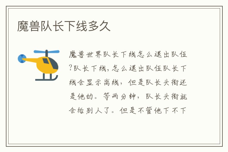 魔獸世界隊長下線怎么退出隊伍?隊長下線,怎么退出隊伍