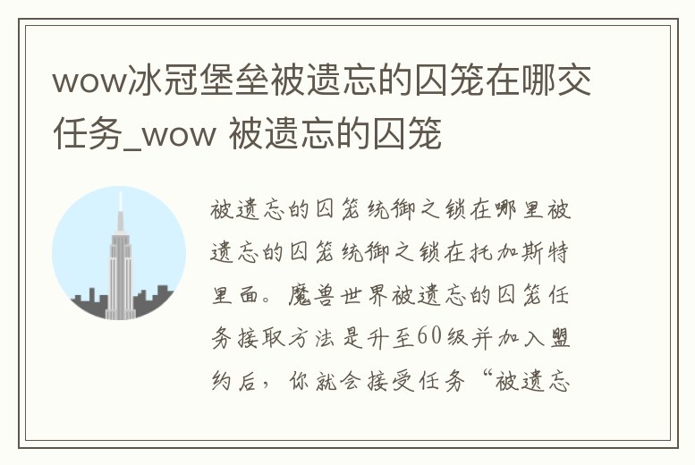 wow冰冠堡壘被遺忘的囚籠在哪交任務_wow 被遺忘的囚籠
