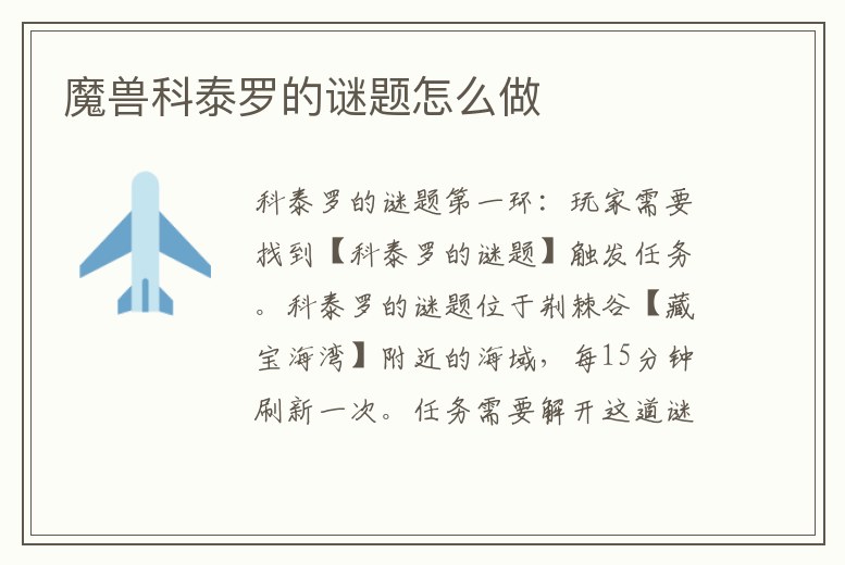 7、魔獸世界51級任務科泰羅的謎題的答案在那里