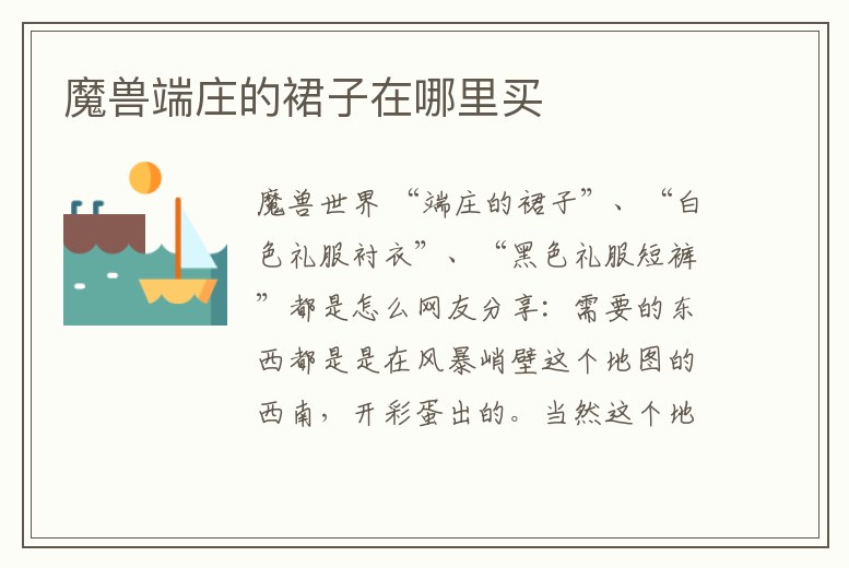 魔獸世界 “端莊的裙子”、“白色禮服襯衣”、“黑色禮服短褲”都是怎么