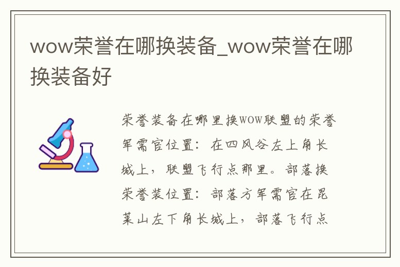 wow榮譽在哪換裝備_wow榮譽在哪換裝備好