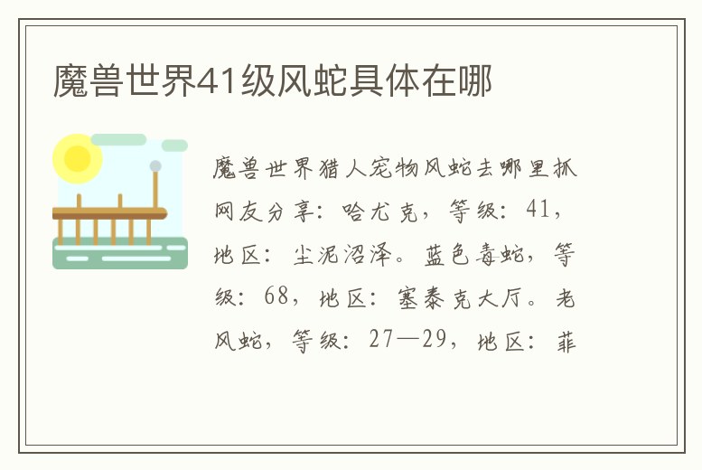 魔獸世界41級風蛇具體在哪