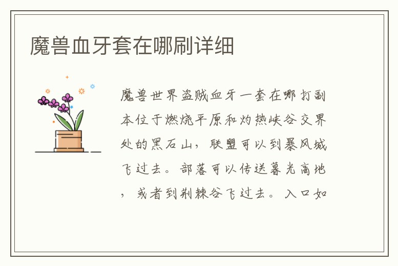 6、魔獸世界 盜賊求 血牙套裝 在哪里出?謝謝了都說黑翼之巢,可好像我沒