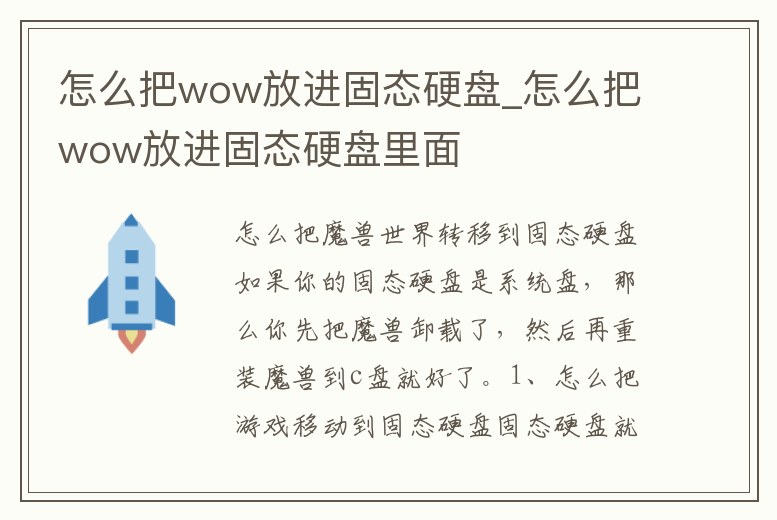 如果你的固態硬盤是系統盤,那么你先把魔獸卸載了,然后再重裝魔獸到c盤就好了。