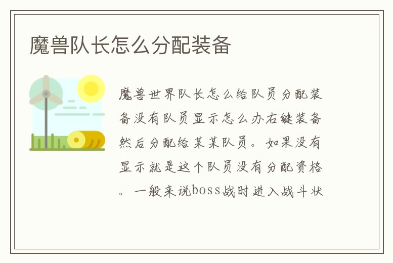 1、魔獸世界里隊長分配下怎么分配裝備啊