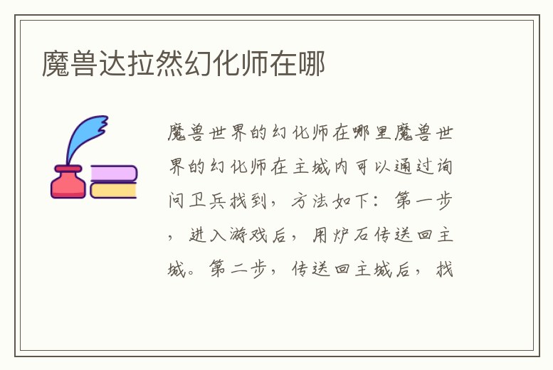 魔獸世界的幻化系統(tǒng)每一次幻化都需要幻化費,幻化的裝備只能是你幻化欄里解鎖了的,步驟如下:第一步,登錄游戲后找到主城的衛(wèi)兵。第二步,詢問衛(wèi)兵幻化師的位置。第三步,打開地圖,查看位置。第四步,跑到幻化師的位置。