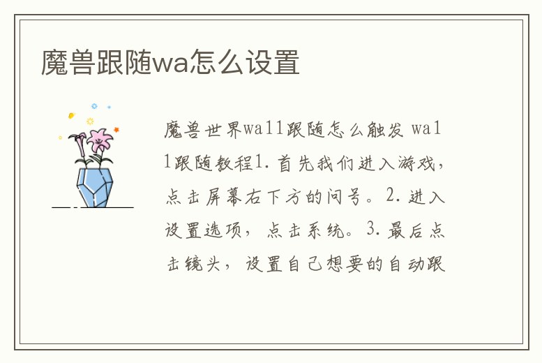 魔獸世界wa11跟隨怎么觸發(fā) wa11跟隨教程