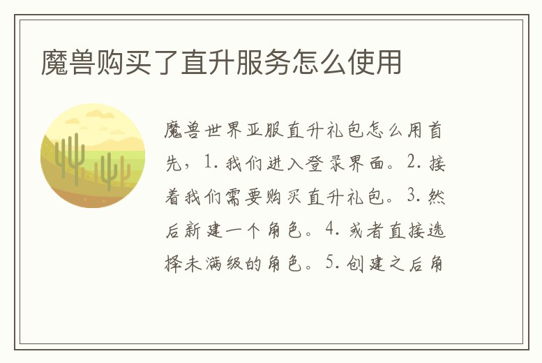 8、魔獸世界懷舊我買了直升70級的服務但新區不能直升該怎么辦