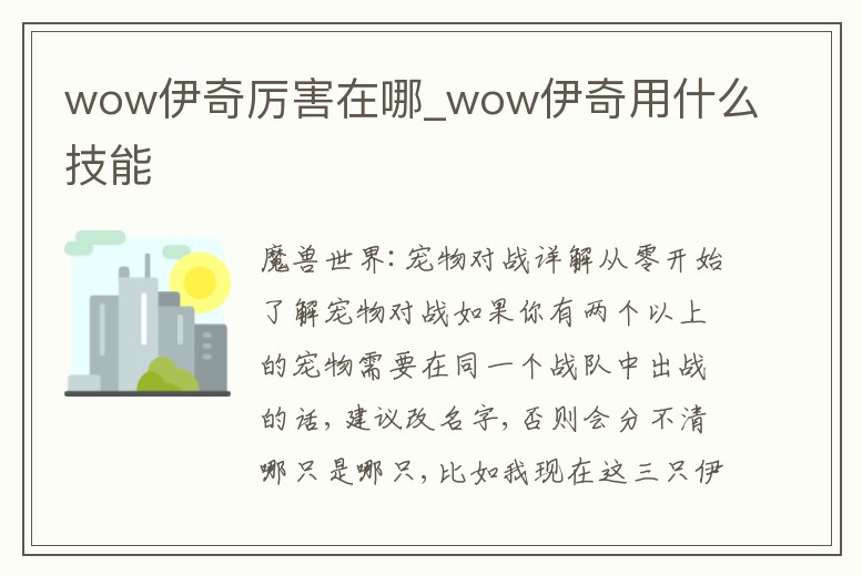 wow伊奇厲害在哪_wow伊奇用什么技能