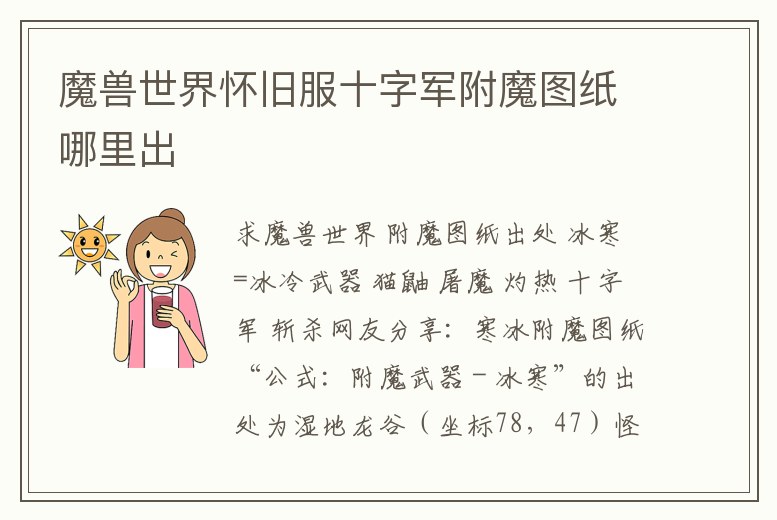 魔獸世界懷舊服十字軍附魔圖紙哪里出