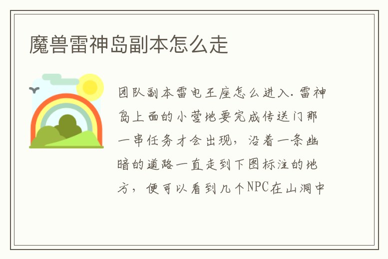 怎么去魔獸世界的雷電王座教程 “雷電王座”副本在雷神島上,而雷神島要等服務器解鎖后才能登島。玩家暫時只能通過陰冷洞窟的下水道前往副本。雷電王座的入口在山洞里,進入后會被傳送到雷電王座副本門口。玩家可。