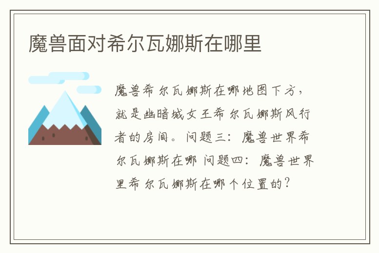 魔獸面對(duì)希爾瓦娜斯在哪里