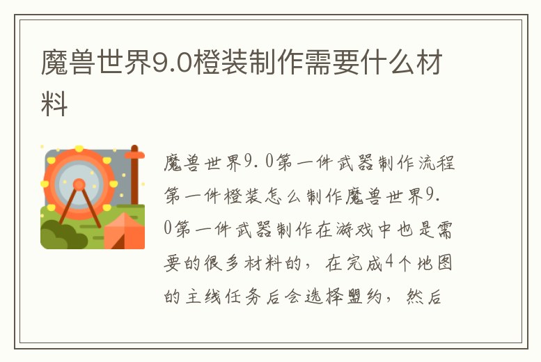 魔獸世界9.0第一件武器制作流程 第一件橙裝怎么制作