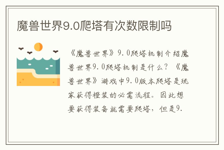 魔獸世界9.0爬塔有次數(shù)限制嗎