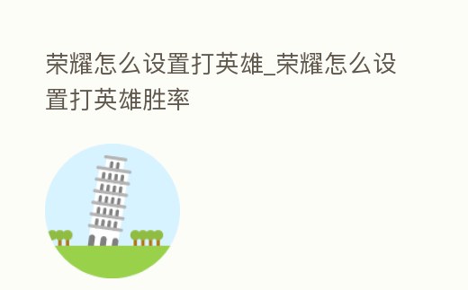 榮耀怎么設置打英雄_榮耀怎么設置打英雄勝率