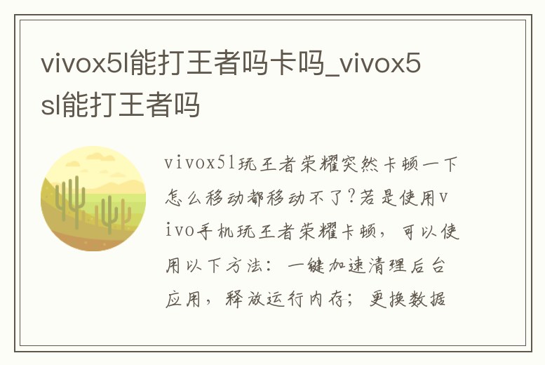 2、vivox5sl玩王者榮耀畫面卡是什么原因