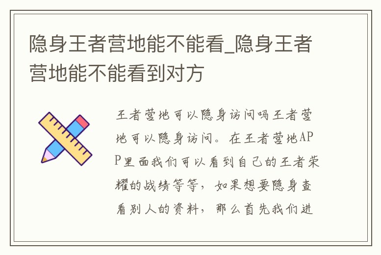 不可以。王者營地app中玩家是無法隱身訪問其他玩家,是會留下痕跡的,但是玩家可以通過接擊對方的訪問功能,看到自己的訪問記錄。點擊右側三點,在彈出的窗口中選擇“刪除此條訪客記錄”,這樣對方就不會知道玩家訪問過。《王者。