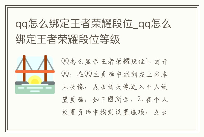 qq怎么綁定王者榮耀段位_qq怎么綁定王者榮耀段位等級