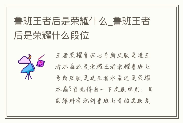 魯班王者后是榮耀什么_魯班王者后是榮耀什么段位