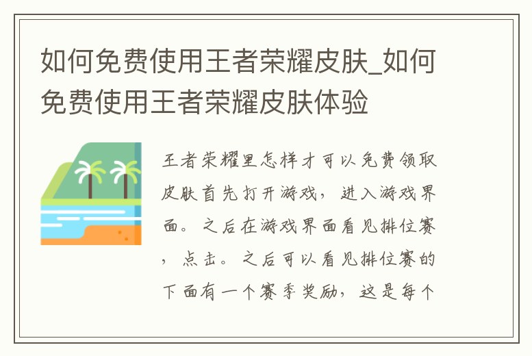 如何免費使用王者榮耀皮膚_如何免費使用王者榮耀皮膚體驗